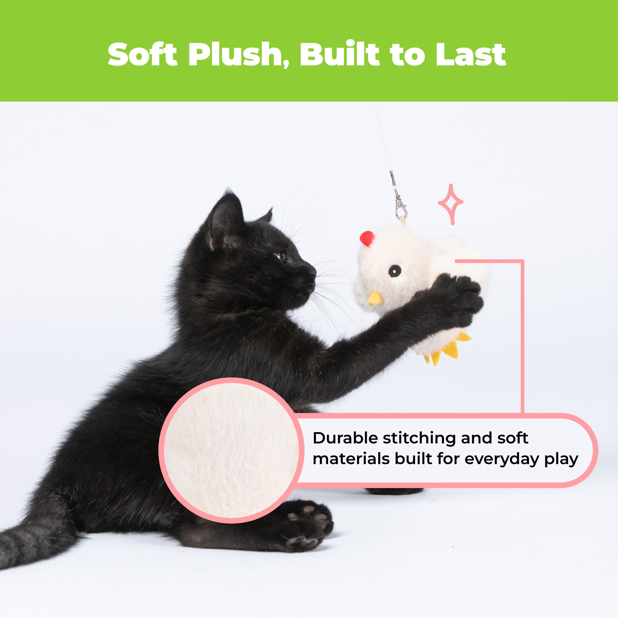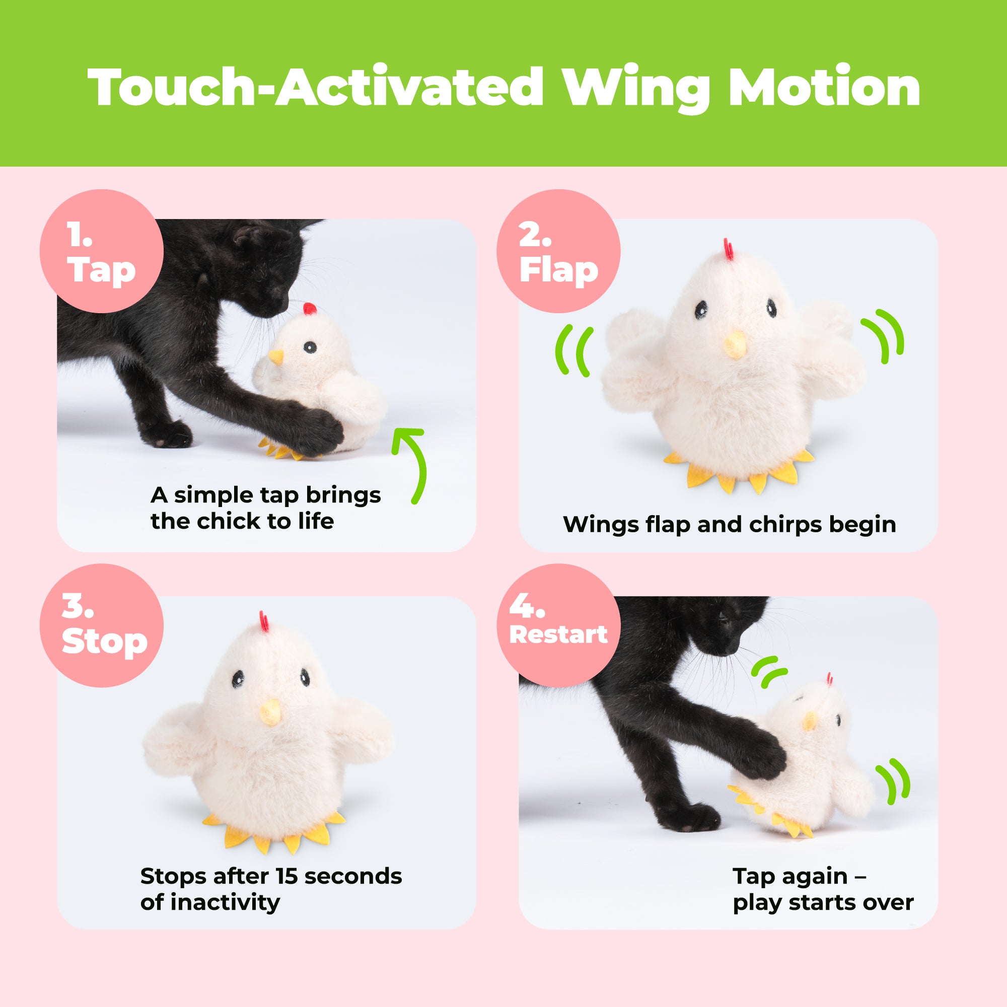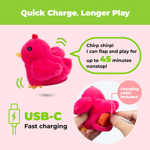 Watch your feline friend pounce into action with the Catify Flapping Chirping Chick—a motion-activated toy that brings the thrill of the hunt right into your living room.